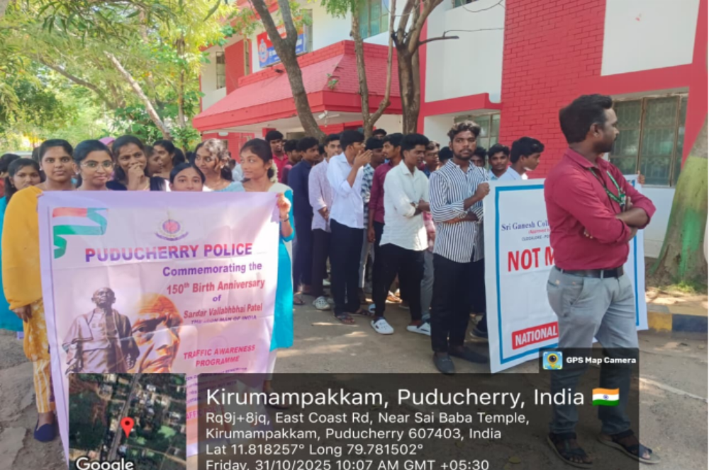 In commemoration of the 150th Birth Anniversary of Sardar Vallabhbhai Patel, the National Service Scheme (NSS) Unit of Sri Ganesh College of Engineering and Technology, Puducherry, organized and participated in a series of impactful events under the banner “SARDAR@150 – Unity and Nation Building.”