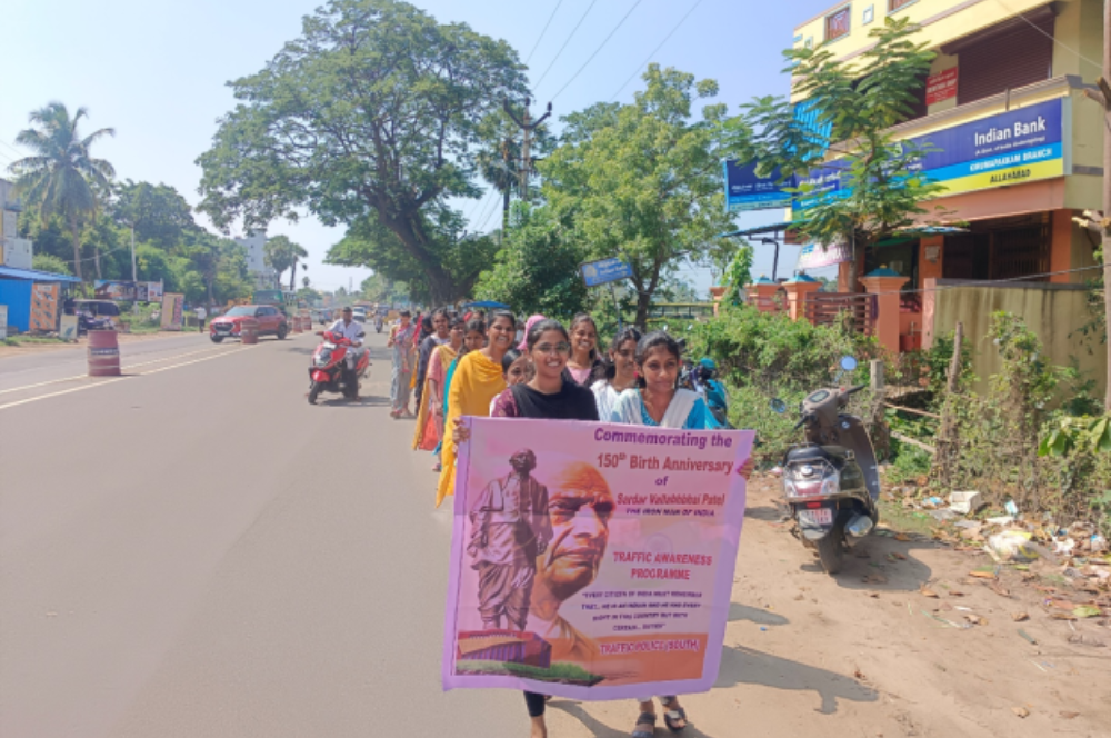 A total of 48 NSS volunteers from the college participated in a District Level Padyatra, held under the guidance of the Police Department and station staff at Kirumampakkam. Students from three medical colleges and one school also joined the walk, which symbolized unity and harmony. Participants took a pledge and marched together to promote national integrity and pay tribute to the Iron Man of India.